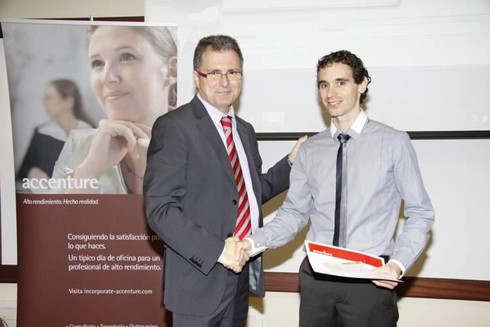 Jonathan González Ríos Bilboko Injinerutza Goi Eskola Teknikoan Telekomunikazino Injinerutzan titulatuak jaso dau Karrera Amaierako proiektu onenaren XI. Accenture Saria. Diarizazino edo soinu iturrien identifikazinoaren alorrean hainbat aplikazino dituan proiektuak jaso dau epaimahaiaren errekonozimendua. Aplikazino horreen artean, entzumen arazoak dituen pertsona ezinduei alkarrizketetan laguntza emotea da. Saria, Eskolako Gradu Aretoan gaur goizean egindako ekimenean emon jako eta bertan izan dira Xabier Ibáñez, Accentureko bazkidea, Ernesto Cilleruelo, Enpresa Antolaketako katedraduna, José Ramón Otegui, Proiektuen Injinerutzako irakaslea eta Enrique Amezua, Eskolako zuzendaria.