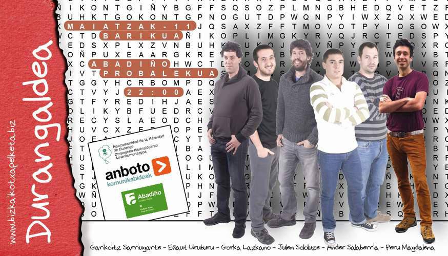Eskualdeetako Bertsolari Txapelketea. Durangaldea eskualdea. Garikoitz Sarriugarte + Eñaut Uruburu 'Lepotxo' + Gorka Lazkano + Julen Sololuze + Ander Salaberria + Peru Madalena