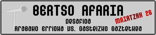 Bertso-poteoa (20:00) + Bertso-afaria (22:00). Bertsolariak: Arabako Errioxa (Ane Olano, Beñat Olano...) vs Gasteizko Gaztetxea (Unai Argote, Iñaki Tena...)