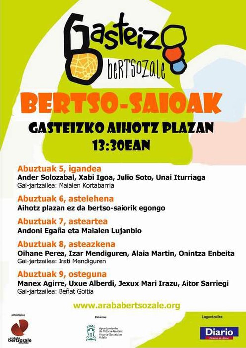 Gasteizko Aihotz plazan | BertsolaritzeaBertso-saioa. Manex Agirre, Uxue Alberdi, Jexux Mari Irazu, Aitor Sarriegi. Gai-jartzailea: Be&ntild