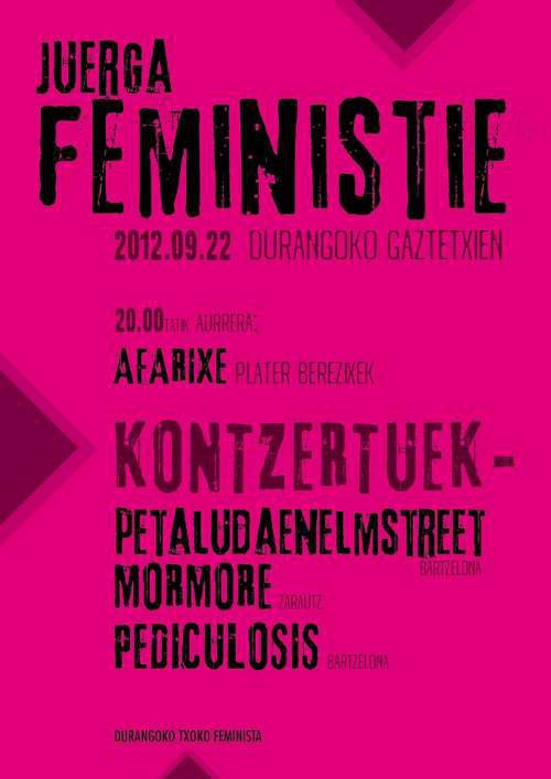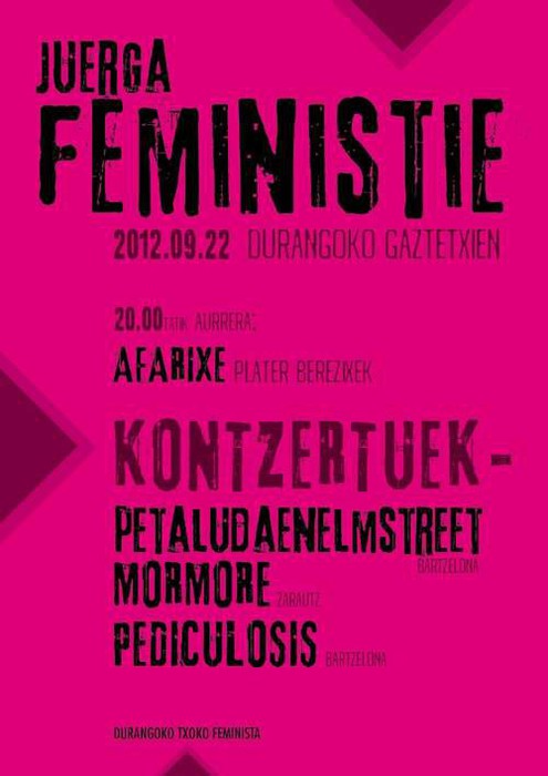 Juerga Feministie. PETALUDAENELMSTREET (Bartzelona) + MORMORE (Zarautz) + PEDICULOSIS (Bartzelona)