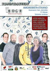 Bizkaiko Bertsolari Txapelketako kanporaketea. Aitor Arrutia, Asier Legarreta, Josu Landeta, Julen Erezuma, Oihana Bartra eta Unai Ormaetxea