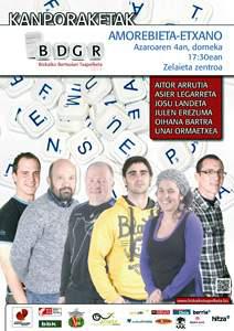 Zornotzako Zelaieta aretoan | BertsolaritzeaBizkaiko Bertsolari Txapelketako kanporaketea. Aitor Arrutia, Asier Legarreta, Josu Landeta, Julen E