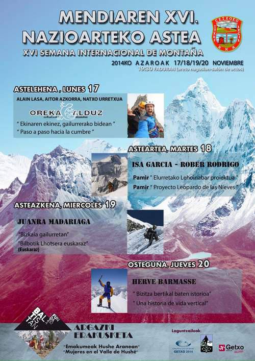 Getxon, Fadurako areto nagusian | BerbaldiakMendiaren XVI. Nazinoarteko Astea. Pamir, edurretako Lehoinabar proiektua. Isa Garcia eta Rober Rodr