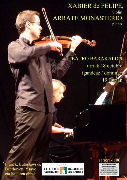 Barakaldoko Barakaldo antzokian | MusikeaXABIER DE FELIPE (Biolinistea) + ARRATE MONASTERIO (Pianistea)