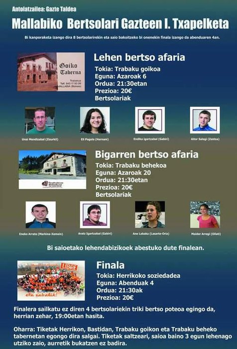 Mallabia (Trabaku Goikoa) | BertsolaritzeaMallabiko Bertsolari Gazteen Txapelketa (1. bertso-afaria)
