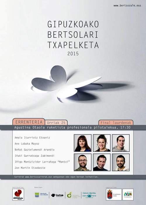 Gipuzkoako Bertsolari Txapelketea. Final laurenak. Amaia Iturriotz, Ane Labaka, Beñat Gaztelumendi, Iñaki Gurrutzaga, Iñigo Mantzizidor Mantxi eta Jon Martin