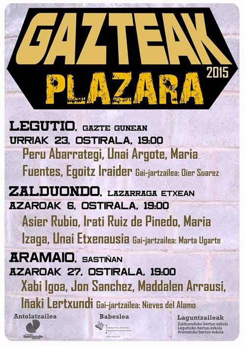 Gazteak Plazara 2015. Asier Rubio, Irati Ruiz de Pinedo, Maria Izaga eta Unai Etxenausia. Gai-jartzailea: Marta Ugarte