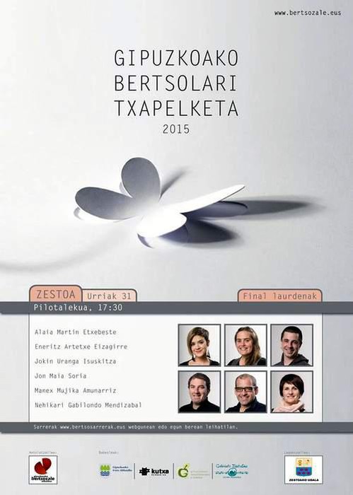 Gipuzkoako Bertsolari Txapelketea. Final laurenak. Alaia Martin, Eneritz Artetxe, Jokin Uranga, Jon Maia, Manex Mujika eta Nahikari Gabilondo.