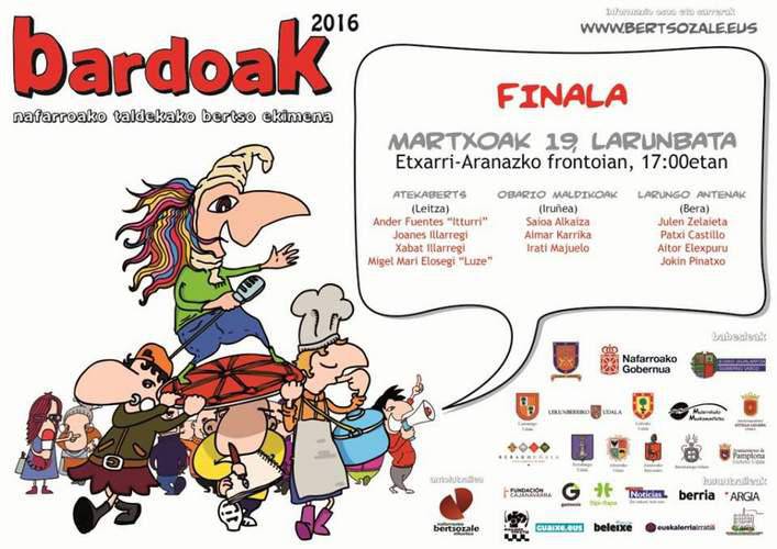 Etxarri-Aranazgo frontoian | BertsolaritzeaBardoak. Finala. Atekaberts (Leitza) + Obario maldikoak (Iruñea) + Larungo antenak (Bera)