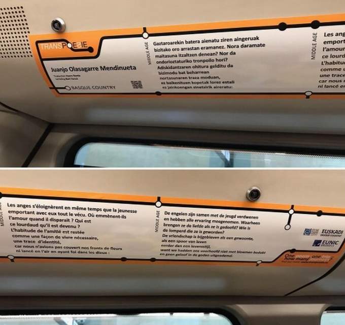 Ganera, euskereak Transpoesie proiektuaren barruan bultzatutako ekimenetan parte hartzen dau. Ekimen hori Etxepare Euskal Institutua bazkidetzat dauen EB/EUNICen Kultura Institutu Nazionalen sareak koordinetan dau. Bruselako garraio publikoaren erabiltzaileek Juanjo Olasagarreren poema bat euskeraz, ingelesez eta frantsesez irakurri leikie.