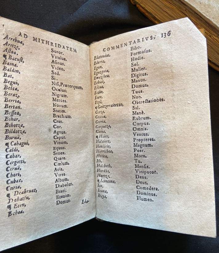 Italian topau dabe Mintzoa argitaletxe nafarreko arduradunek antxinako liburu horren ale bat. Orain arte gitxi aitatua zan bertoko adituen artean, ez dalako euskerearen inguruko lana, munduko hizkuntzen inguruko errepaso orokorra baino. Baina Mintzoakoek nabarmendu dabenez, euskerearen inguruko orrialde interesgarri batzuk ditu.