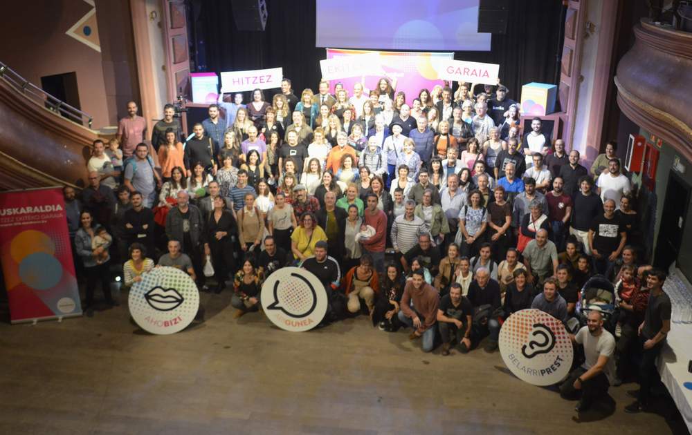 Belarriprest, ahobizi eta entidadeen erronkak gizarteratzea be inportantea dala azpimarratu dabe Bilbon batutakoek: Lorpenak behar doguz, euskeraz biziteko pausu barriak. Zinez uste dogu lorpen askoren gehiketatik joango garela gizartean euskerearen presentzia handitzen. Azken bartean, Euskaraldiaren helburua garbia da: beste behin be, lortu nahi dogu herritarren hizkuntza ohituretan eta praktika linguistikoetan euskereak gero eta leku zabalagoa izatea.