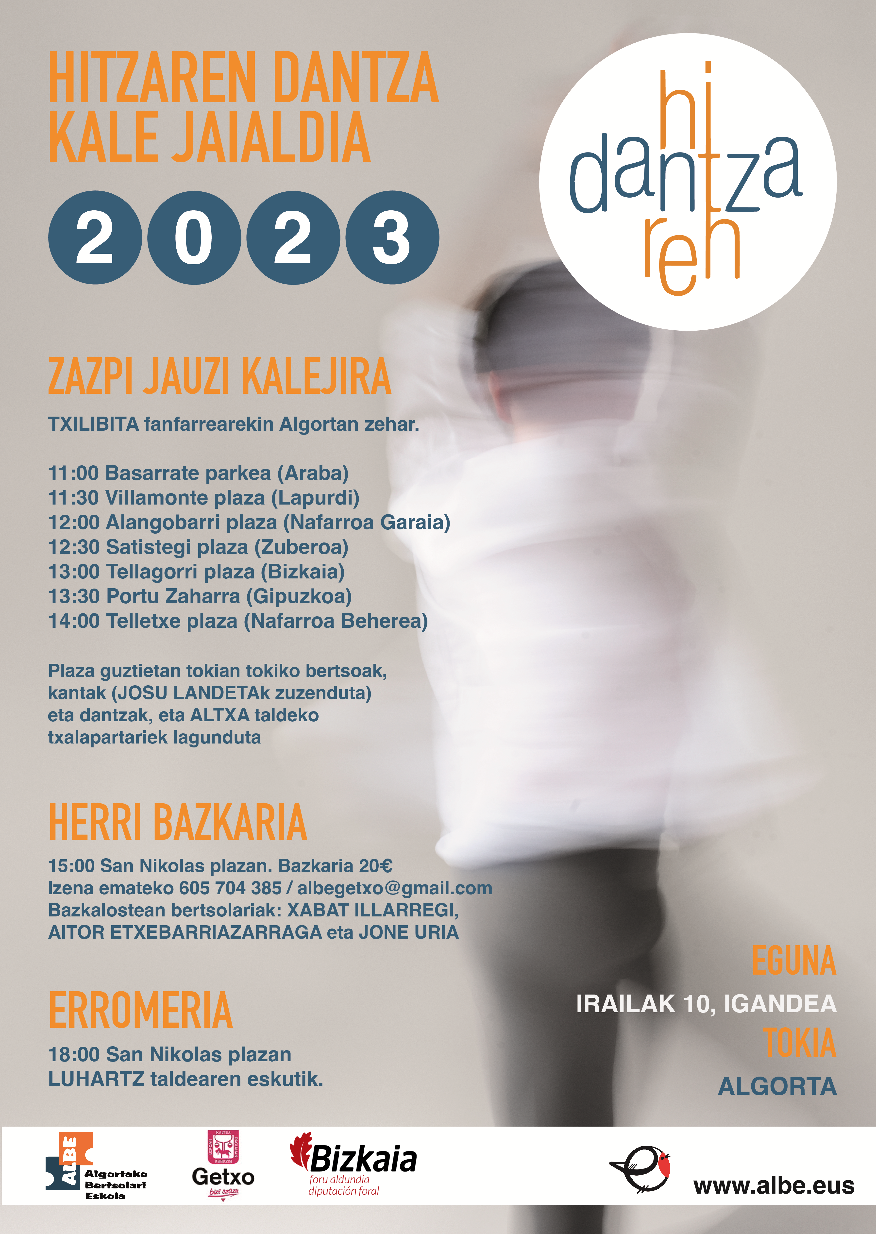Goizeko 11:00etatik aurrera, Algortako plazak eta kaleak bertsoz, jantzaz eta kantuz beteko ditugu, Txilibita fanfarrearen musikaz eta Altxa taldeko txalapartaz lagunduta. Xabat Ilarregi, Aitor Etxebarriazarraga eta Jone Uria izango dira bertsotan.