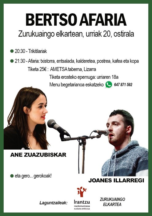 Zurukaingo Alkartean. | BertsolaritzeaBertso Afaria. ANE ZUAZUBISKAR + JOANES ILLARREGI