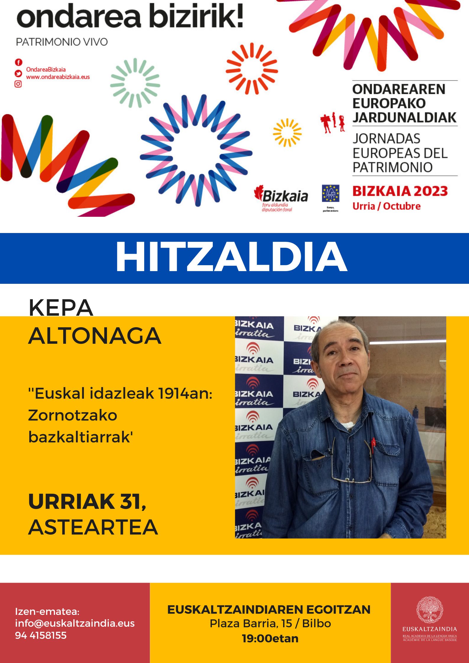 Euskaltzaindiaren egoitzean (Plaza barria, 15, Bilbo). | BerbaldiakBerbaldia. KEPA ALTONAGA 'Euskal idazleak 1914an: Zornotzako bazkaltiarrak'