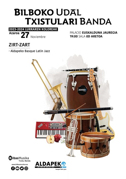 Bilboko Euskalduna Jauregian | Musikea'Zirt-Zart'. BILBOKO UDAL TXISTULARI BANDEA + ALDAPEKO BASQUE LATIN JAZZ