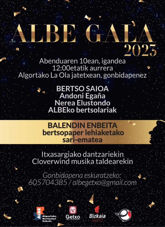 - Bertsolariak: Adoni Egaña, Nerea Elustondo eta ALBEko bertsolariak.