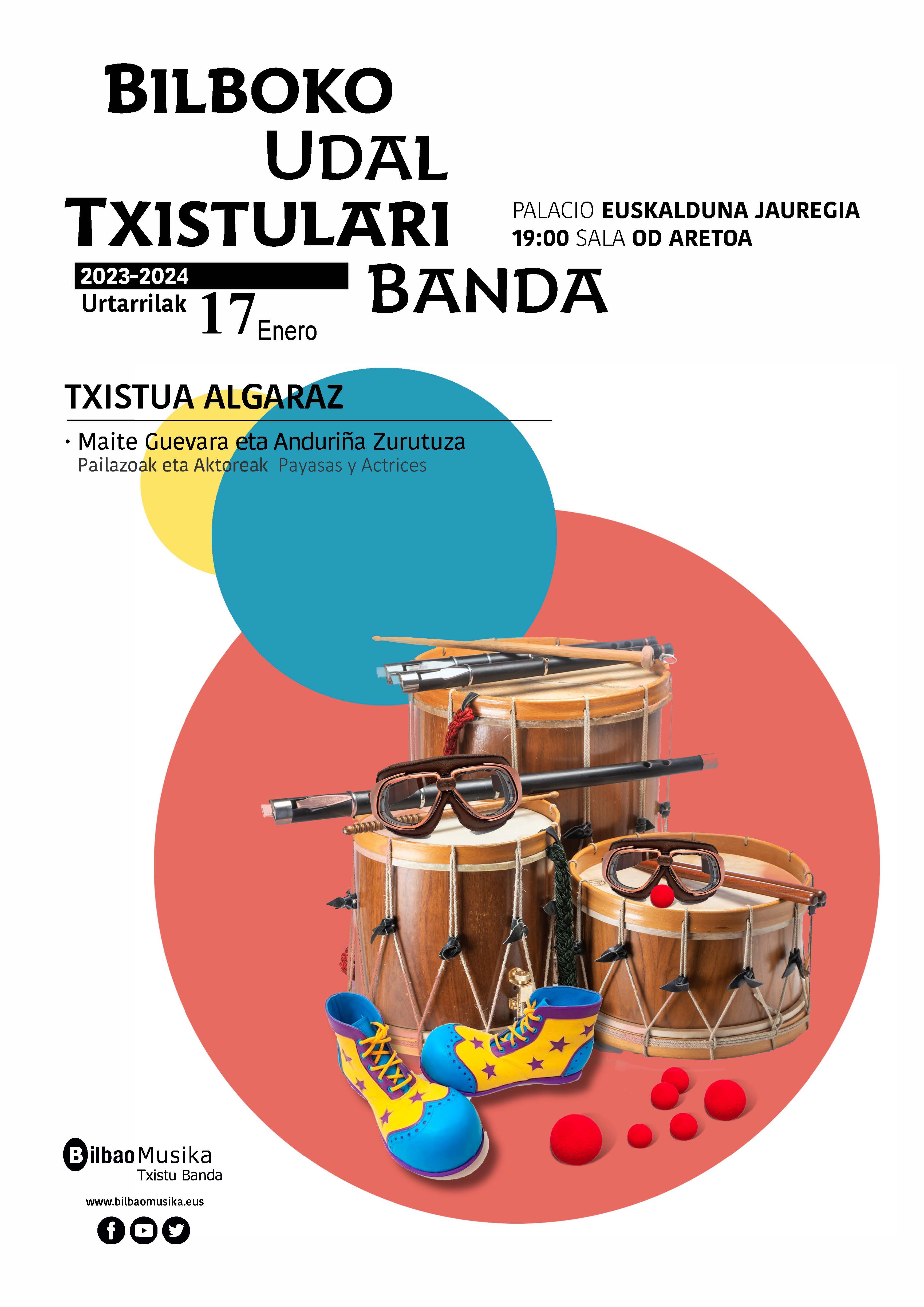 Txistularien boskoteak aukerautako melodiak Maite Guevara eta Anduriña Zurutuza aktore eta pailazo talentudunen txispa eta trebetasun komikoagaz buztartuko dira.