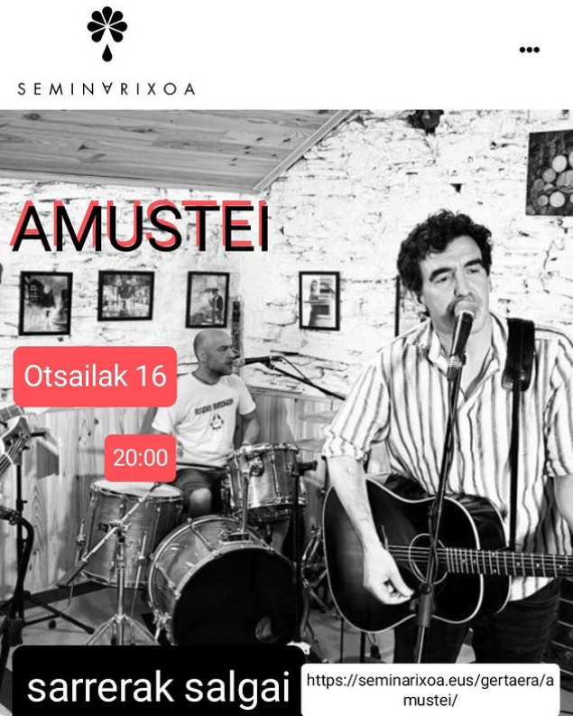 Mikel Garate, Kepa Leturia, Iñigo Irizar, Joseba Aldanondo eta Iñigo Ibarzabal dira Amustei. Diskoa, 2023ko urtarrilean eta zezeilean grabau eben Beasaingo Pottoko estudioan, eta Aldoka Maldoka (Popis) tabernan eta euren zuzenekoetan egongo da salgai.