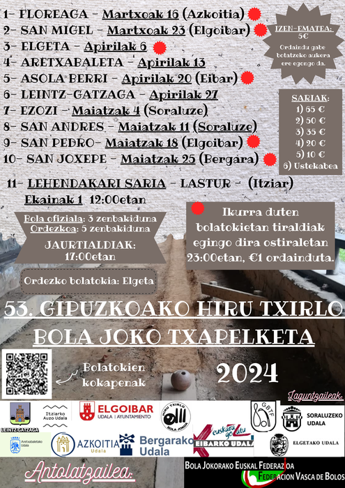 Gipuzkoako hainbat herritan.53. Gipuzkoako Hiru Txirlo Bolo Joko Txapelketea