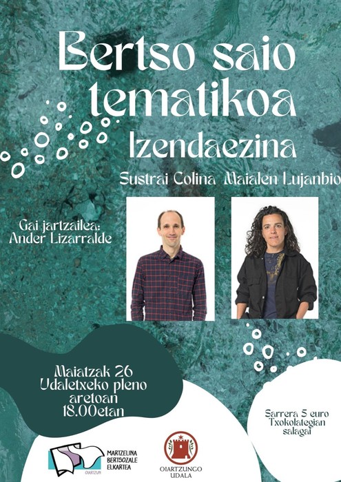 - Bertsolariak: Sustrai Colina eta Maialen Lujanbio.