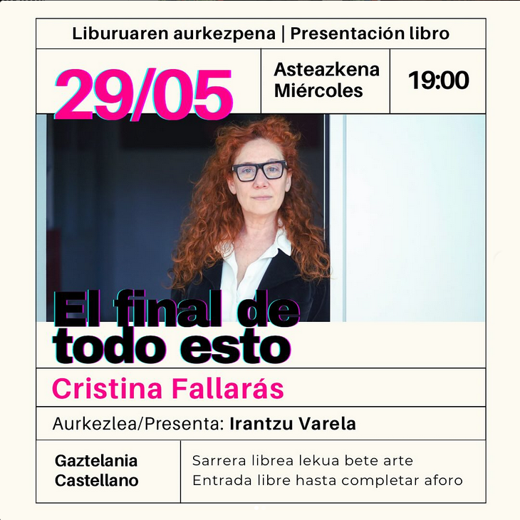 Bilboko La Sinsorga Kulturgune Feministan. | Aurkezpenak'El final de todo esto'. CRISTINA FALLARÁS