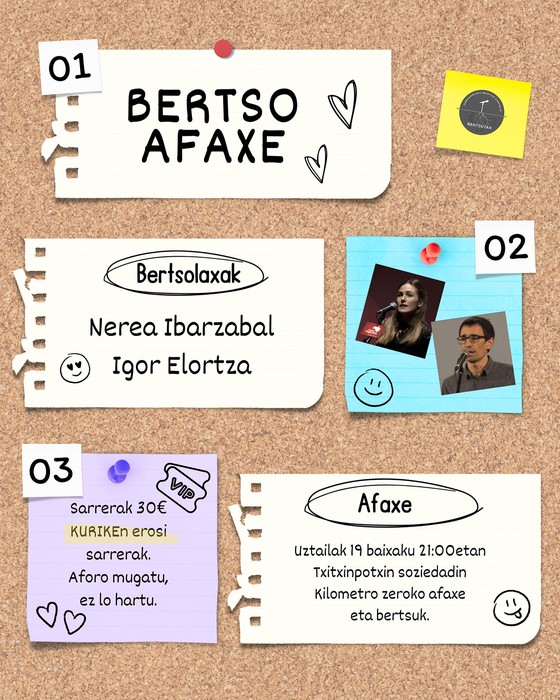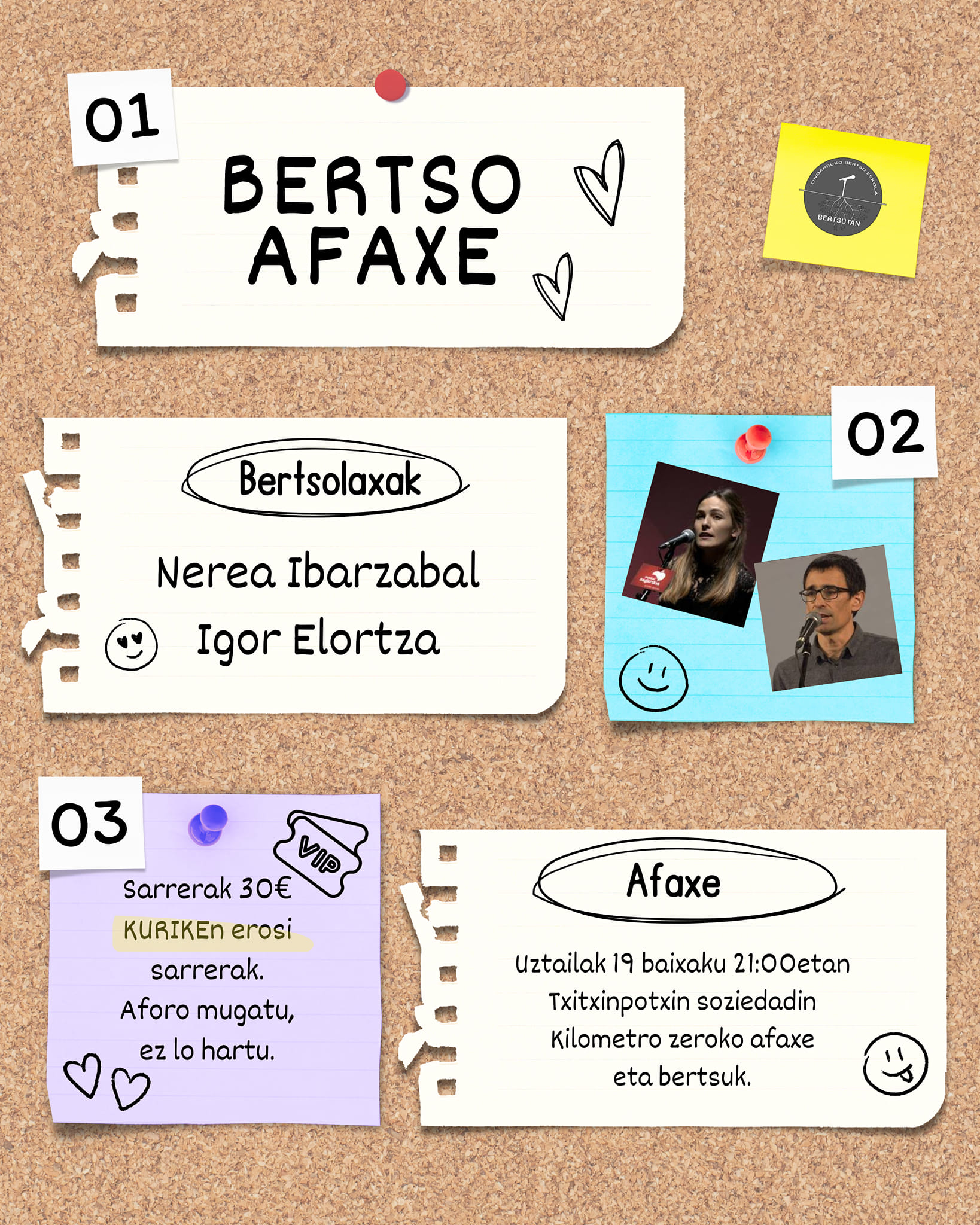 - Bertsolariak: Igor Elortza eta Nerea Ibarzabal.