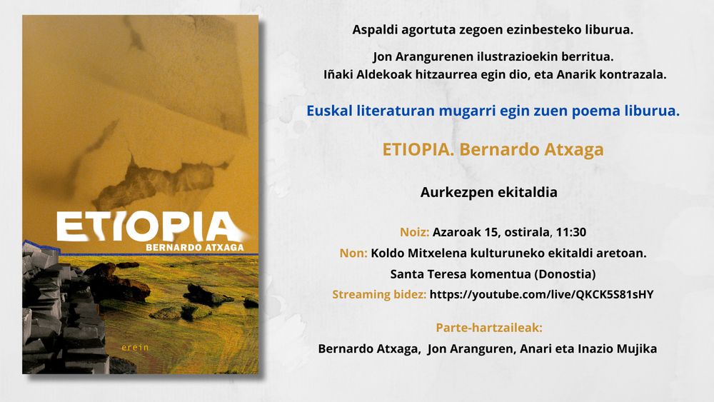 Donostiako Koldo Mitxelena Kulturunean. | Aurkezpenak'Etiopia'. BERNARDO ATXAGA