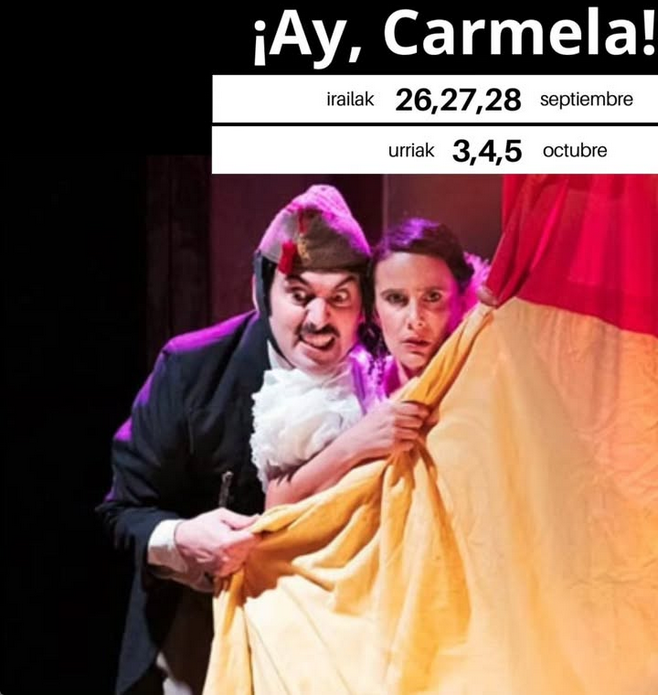 ¡Ay, Carmela! Ramón Bareak zuzendu dau eta Olatz Ganboa eta Diego Pérez dira protagonistak. Soinu espazioaz Adrián García de los Ojos arduratu da, Fernando Alcauzar argiztapenaz eta Betitxe Saitua, barriz, jantzietaz.