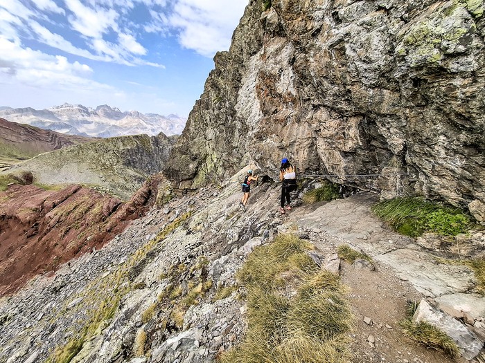 Aurrera egitean eta bidean gora eginez, kateak dagozan lehen tarte teknikora pasauko gara. Hemen, jente asko egoten da, beraz, hobe itxarotea, bestela, kateak gehiegi tenkatzen dira eta laguntzinoa baino gehiago arriskua bizi geinke. Holan, hobe paisajeaz gozau eta gure txandearen zain egon. Ondoren, tximinia itxurako hatxen arteko leku estu batetik pasauko gara eta hemen be, adi jente pilaketak badagoz harriak gainera ez botatako eurak bajaukeran. Orain bai, azken txanpan sartu gara Anayeteko tontorraz disfrutetako.