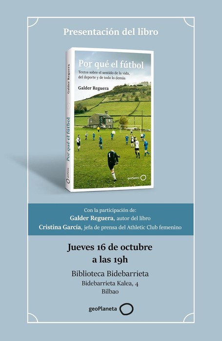 Bilbon, Bidebarrietako Liburutegiko Areto Nagusian.'Por que el futbol?'. Idazlea: Galder Reguera.