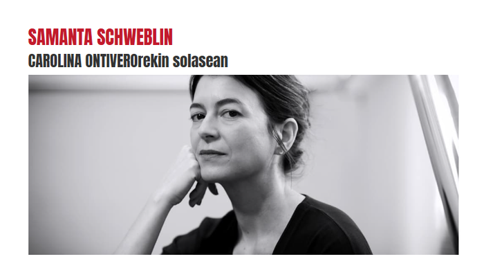 Samanta Schweblin argentinar literatura garaikideko eta munduko ahots indartsuenetakoa da, narratiba berezikoa. Fantasia da artistearen mundua, bildurrezkoa eta, jakina, umorezkoa, askotan baltza. 2025ean Literaturako Nobel sarirako hautagaia izan da, eta sari ugari jaso ditu...