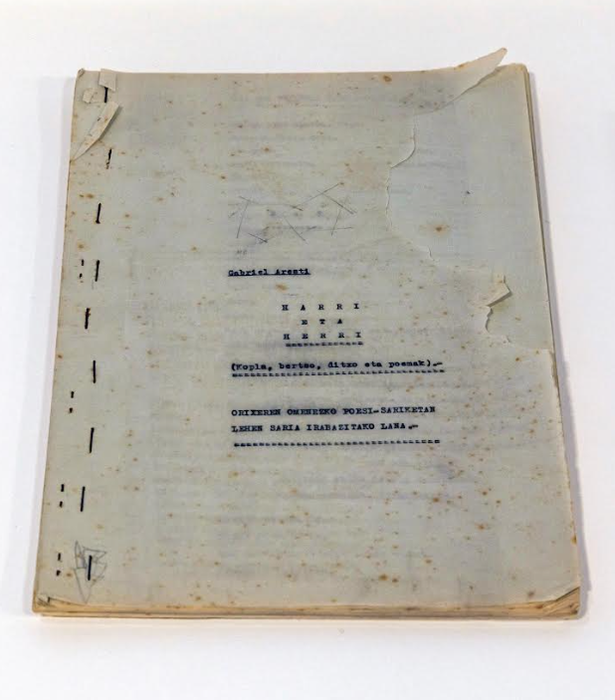'Harri eta Herri' poema-liburuaren jatorrizko mekanografiatua hartu dau Bilboko Arte Eder Museoak