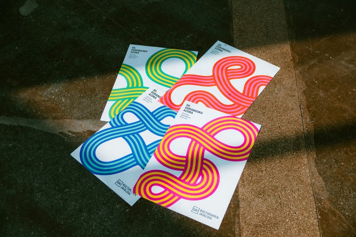 Bai, 60 zenbakian oinarritu nintzan, izan be, urteurrena zan: artean egindako bidea eta oraindino be egiteko dagoana bezela. Diseinua eskuz marraztu neban, hori bai, zenbaki bat baino gehiago da: ibilbidea osotzen dau mobimenduaz, baita bizi izandakoa zein etortzeko dagoena be. Hortik aurrera, 60 zenbakia deformau neban eta forma eta ibilbide posibleen kopuru infinituak biderkatuz.