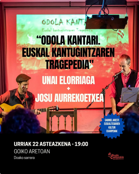 Bilboko Kafe Antzokian. | Musikea'Odola kantari. Euskal kantugintzaren tragepedia'. UNAI ELORRIAGA + JOSU AURREKOETXEA