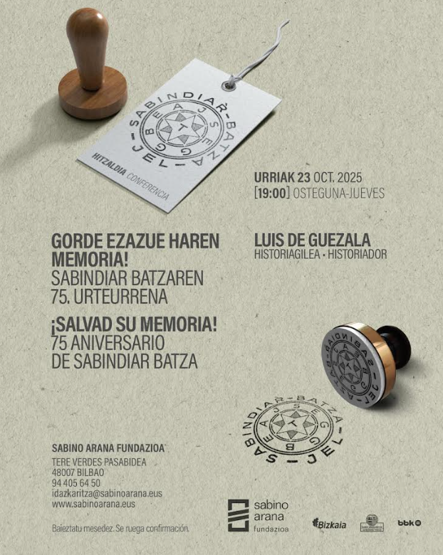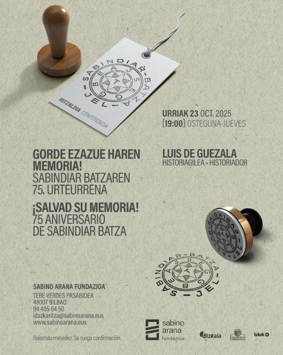 Bilbon, Sabino Arana Fundazinoaren egoitzan (Tere Verdes Pasabidea).'Gorde ezazue haren memoria! - Sabindiar Batzaren 75. Urteurrena.'