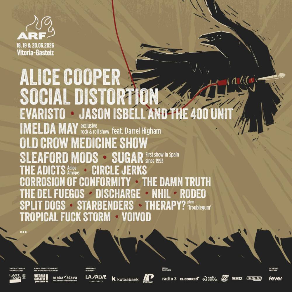 Azkena Rock Festivalek ezagutzera emon ditu 2026ko bagilaren 18, 19 eta 20an Gasteizen egingo dan hurrengo edizinoko kartelaren lehen protagonistak. Baieztapenen lehen txandako buruak Alice Cooper eta Social Distortion dira. Talde biek, estaduko kontzertu bakarrak emongo ditue Gasteizen.
