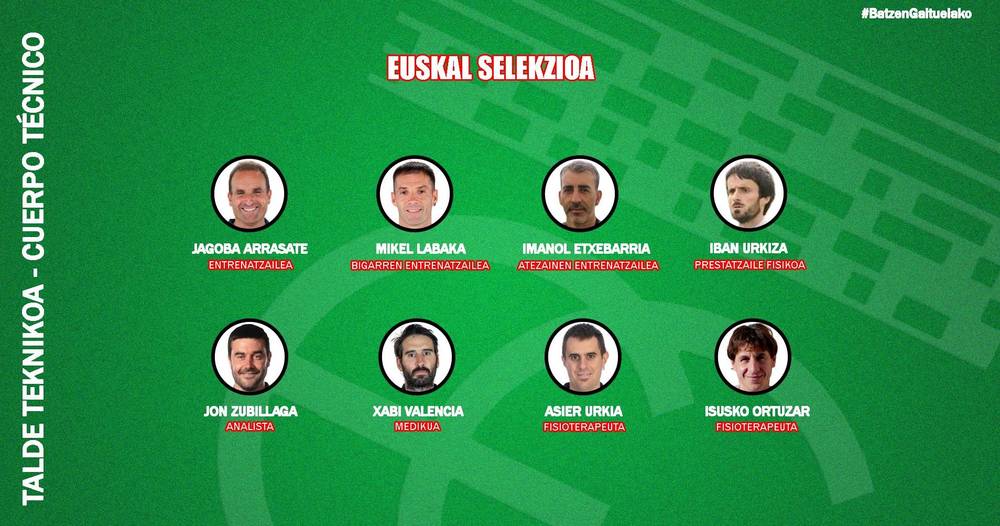 Mikel Labaka izango da Arrasateren laguntzailea, bigarren entrenatzailea, Jon Zubillaga analistea, Imanol Etxebarria atezainen entrenatzailea, Iban Urkiza prestatzaile fisikoa, Xavi Valencia medikua eta Asier Urkia eta Isusko Ortuzar fisioterapeutak. Lehen mailako talde teknikoa sortzea izan da gure asmoa, kiroltasunari eta profesionaltasunari eustea.