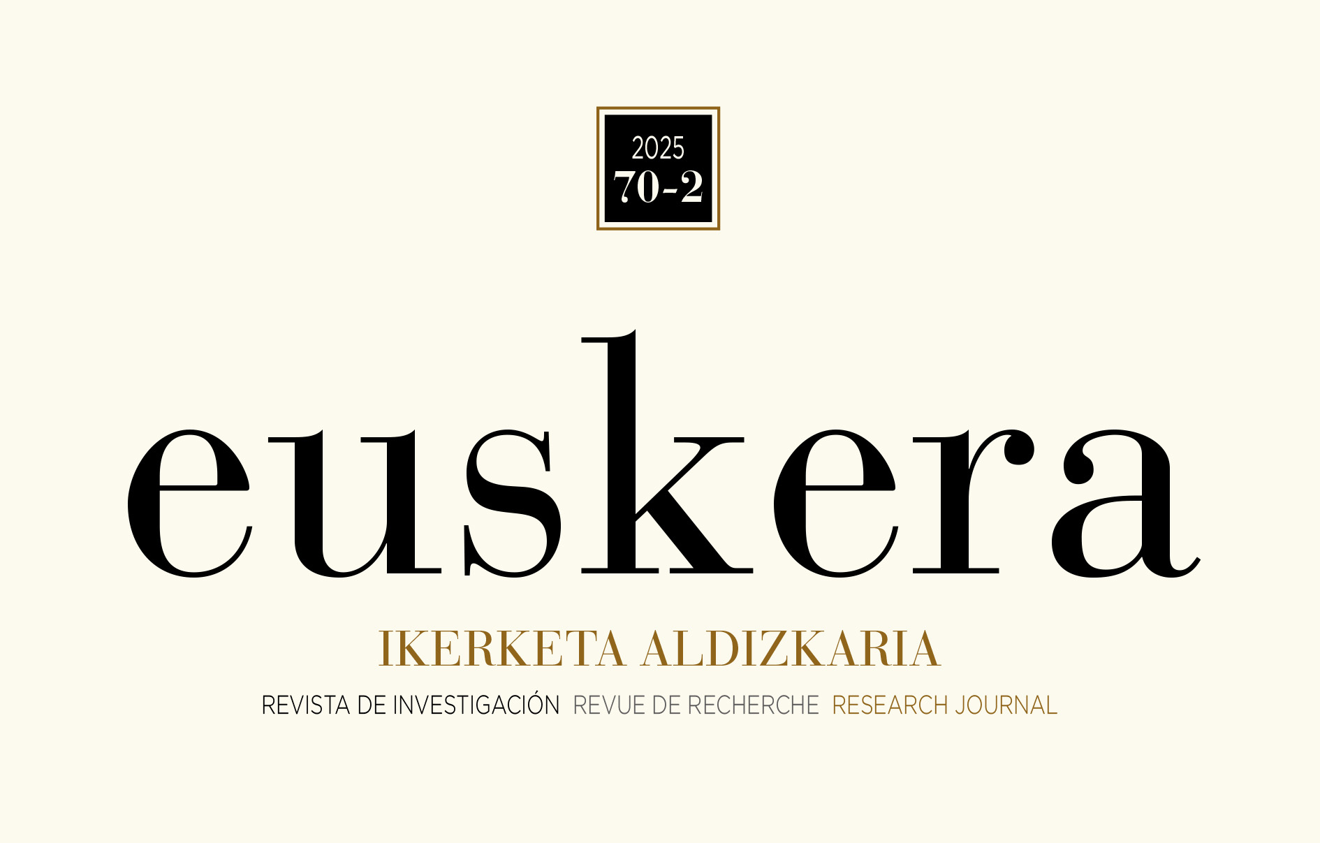 Euskaltzaindiak Euskera Ikerketa Aldizkariaren 2025eko bigarren zenbakia argitaratu dau (2025. urteko lehenengo zenbakia apirilean plazaratu zan). Halanda ze, Euskera Ikerketa Aldizkaria 2025, 70, 2. Zortzi ikerketa-artikulu, ohar bi eta liburu-aitamen bi batzen ditu zenbakiak.