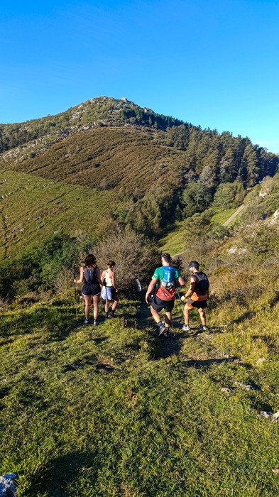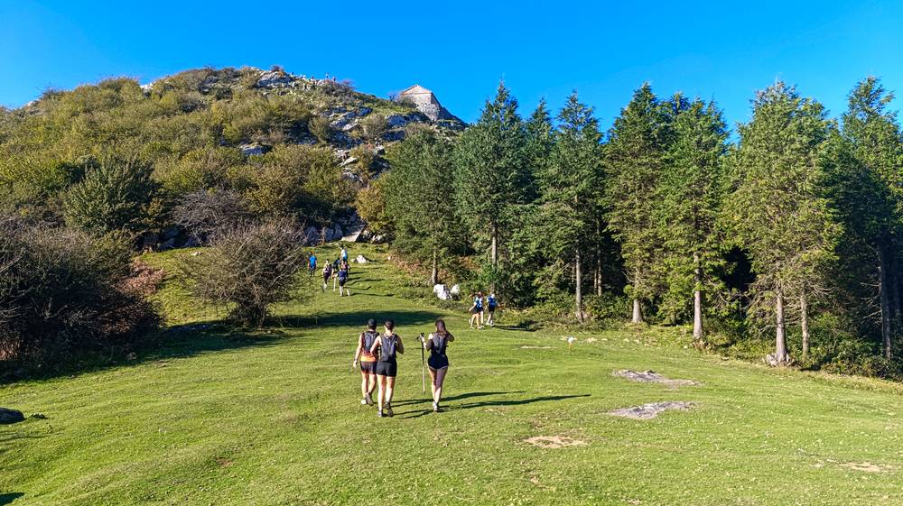 Santa Eufemiko eguna dala-eta, bertara igon genduan, inguruetako panoramikarik onenz disfrutetako. Hori da ibilbideko tontorrik gogorrena eta estimaduena. Beherantza goazela, anoa-postu ederra izango dogu, baita komun eta aterpeak aurrez aurre be. Konpletoa, erabat. Bertan, berbetan ibili, danok alkartu, barritak, frutu siku, kafea nahi izan ezkero eta aurrera.