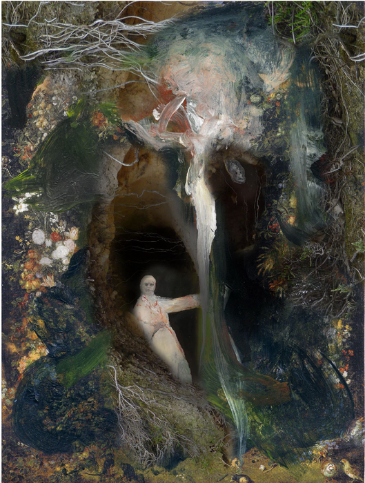Azala oso garrantzitsua iruditzen jat, izan be, disko bakotxak bere irudia izan behar dau. Kasu honetan, Joseba Ezkurdiren obrea, daborduko sortua, da portada. Obrea ikusitakoan, horrek nire musikea deskribiduten ebala sentidu neban, konexino oso polita izan zan. Gainera, obreari egin jakon laudorioa sekulakoa dala iruditu jakun.