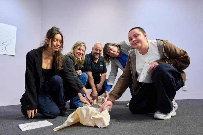 Artista biek materiaren eta berbearen arteko alkarrizketa artistiko hau arretaz begiratzeko konbita giten deuskue. Biren arteko joan-etorria da, sortze prozesuaren hauskortasuna eta orekea erakusten dauen materialen, gorputzen eta begiraden arteko alkarrizketea, laburtu dau mahaiko beste kide batzuekaz batera artista gazteak babesten etorri dan Ana Otadui Biteri Bizkaiko Batzar Nagusiak erakundeko buruak. Bizkaiko Batzar Nagusiak erakundeko buruak zehaztu dauenez, erakusketea, Bizkaian trebatutako talentu gazteen beharra erakusteko Bizkaiko Batzar Nagusiak erakundeak EHUko Arte Eder Fakultadeagaz orain dala hamar urte baino gehiagotik daben akordioaren beste atal bat da. Horretarako, Batzar Nagusiak erakundeak erdialdeko leku bat lagaten dabe, euren heziketa zikloa amaitzen daben unibersidadeko ikasleen sormena Bizkaiko ikusleakana errazago heldu daiten. Hitzarmen horren ondorioz, 2011tik urtero hiru erakusketa atontzen dira graduondoko ikasketak unibersidade-zentroan amaitzen dituen ikasleakaz.