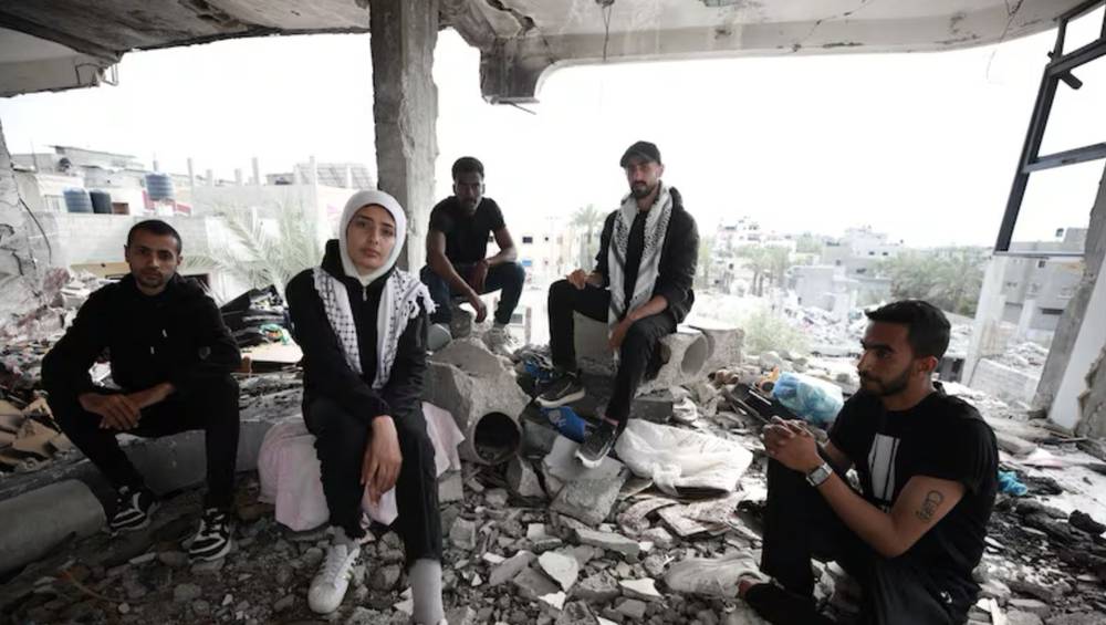 Orain berba egin eta abestuko dogu dana kontetako... Entzun eiguzu eta izan zaitez gure ahotsen eta horreen guztien ahotsen oihartzuna, aldarrikatzen dabe Sol Band Gazakoek, dagoeneko talde honen goiburu bihurtu dana, hondakinetatik abesten baitau itxaropenari bizirik eusteko.