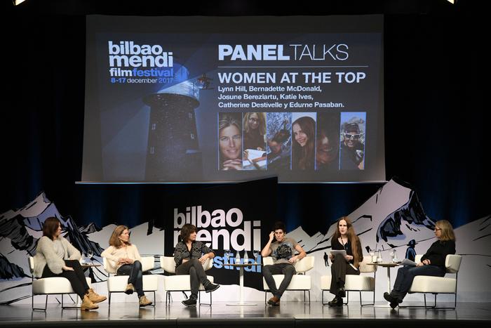 Edurne Pasaban, Lynn Hill, Catherine Destivelle, Josune Bereziartu, Katie Ives eta Bernadette McDonald, 2017ko Mendi Filmen.