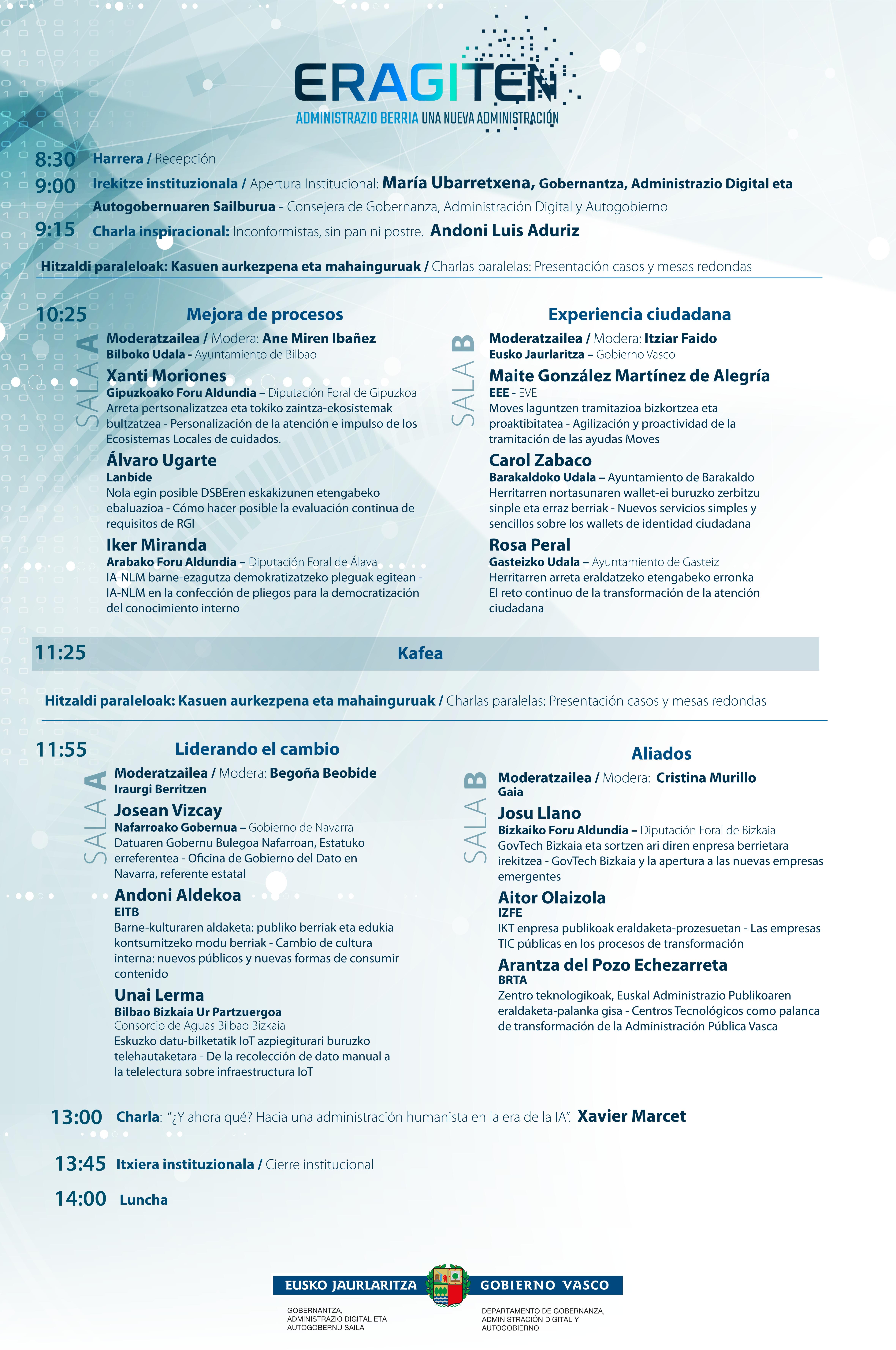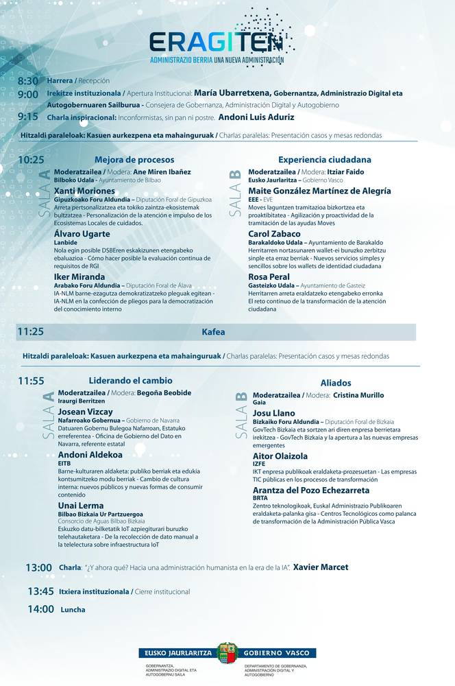 ERAGITEN Gobernantza, AdministraziNo Digital eta Autogobernu Sailak atondutako ekitaldia eta euskal administrazinoetako teknikariak eta arduradunak batzea dau helburu, beharrak, ikuspegiak, esperientziak eta martxan dagozan zerbitzuak partekatzea, bai eta sinergiak identifiketea be, ondoren administrazino publikoek