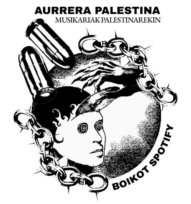 Halanda be, ondokoa nabarmendu gura dabe: multinazionalen esku dagoan plataforma batek, dana dalakoa izanda be, neskez ditu eskuak garbi. Beraz, horreetako bat seinaletan gagoz: Spotify. Jakin badakigu, Spotifyrentzat ez garela inor, baina gauza bat argi itxi gura deutsagu Spotifyri; ez deila ezer izan guretzat. Horreezaz gan, azpimarratu gura dogu Musikariak Palestinarekin ez dala jaio gremiokideak seinaletako helburuz, izan be, badakigu Euskal Herriko musikarion kasuistikea eta lehentasunak desbardinak dirala.