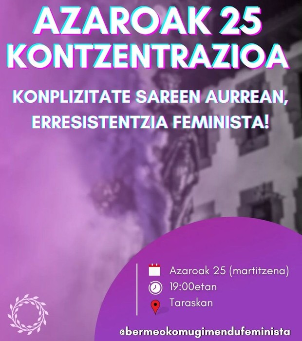 2025-11-21 11:29 KultureaBermeoko Udalak bat egingo dau Mobimentu Feministeak Taraskan deitutako alkarretaratzeagaz.
