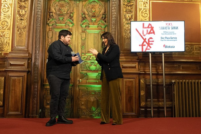 XXI. edizio honetan Lauaxeta saria Ikus-entzunezkoen kategorian aurten ex aequo emon jake Inge Mendioroz Ibañezi Lurdes Iriondo, ez gara alferrik pasako dokumentalagaitik eta Oier Plaza Gartziari Popel dokumentalagaitik.