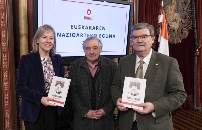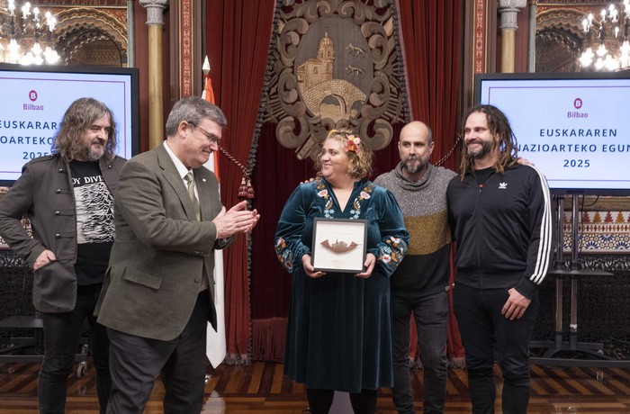 Juan Mari Aburto Bilboko alkateak, Eider Inunciaga Euskerako, Herritarren Arreta eta Partaidetzako, 2030 Agendako eta Nazinoarteko Gaietako zinegotziak eta Udalbatzako ordezkariek hasierea emon deutse Euskerearen Nazinoarteko Egunaren ospakizunei, udaletxeko Arabiar Aretoan. Egun honetan, Zea Mays talde bilbotarrari egin jakon omenaldia izan da ekitaldi nagusia, musikearen bidez euskereari egiten deutsen ekarpena saritzeko. Ekitaldian, gainera, ezagutzera emon dira Jon Kortazarrek idatzi eta Bilboko Udalak argitaratutako Gabriel Aresti. Poesia eta gizartea liburua, Bilboko poeta handiaren heriotzearen 50 urte beteten diranean eta Udalagaz Euskeraz kanpainea, uri osoan zenbait euskarritan ikusi daitekeena.